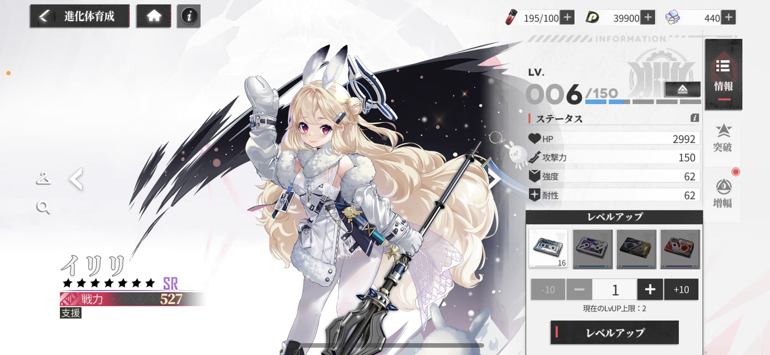 キャラのレベルアップには経験値アイテムを使用するのですが、そのアイテムも強化の画面から入手できるクエストに飛ぶことができクエストスキップなどで簡単に入手できるのがユーザーに優しいポイントだと思いました。
