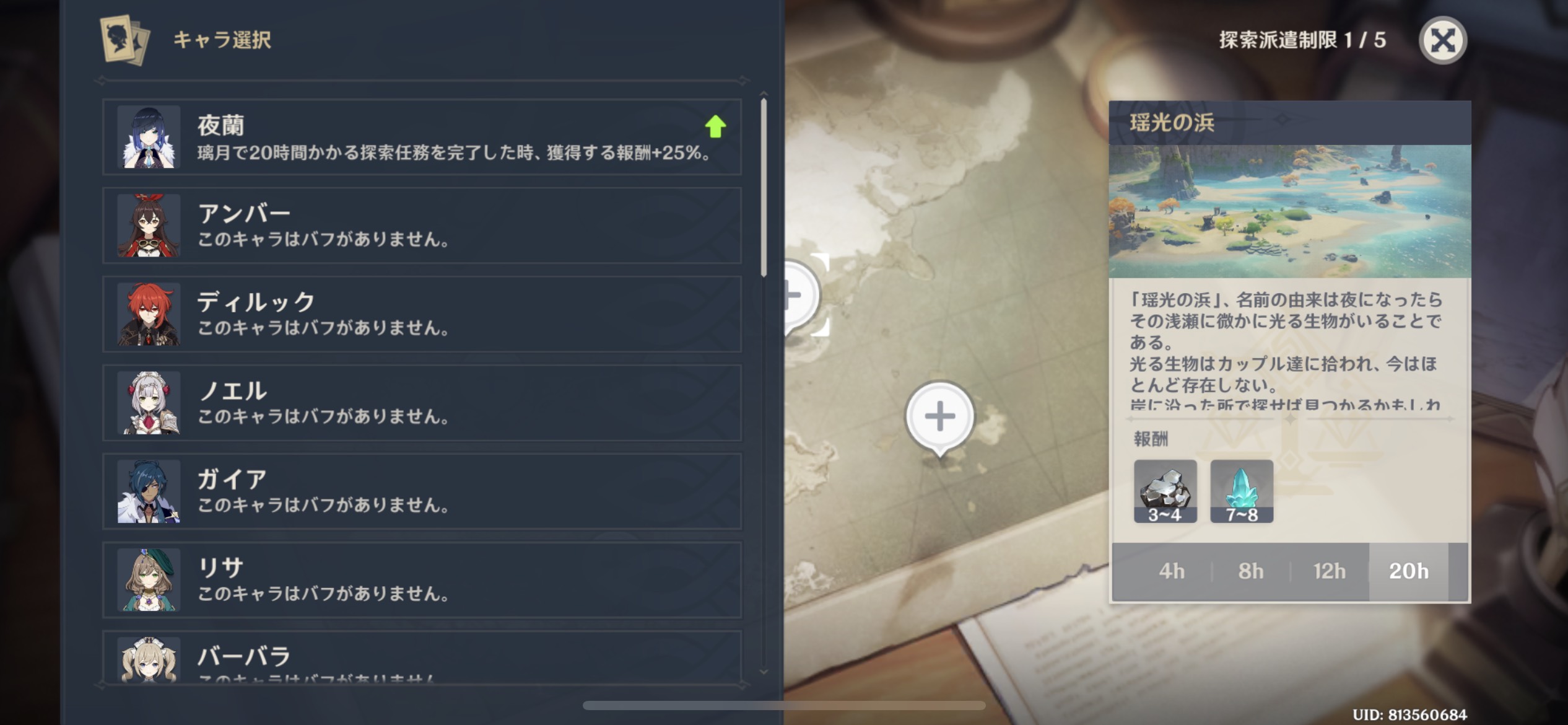 モンドや璃月などの地域によってボーナスがあるキャラクターがいるのでそのキャラを使うとさらに効率が上がります。持っていたらぜひ使いましょう。