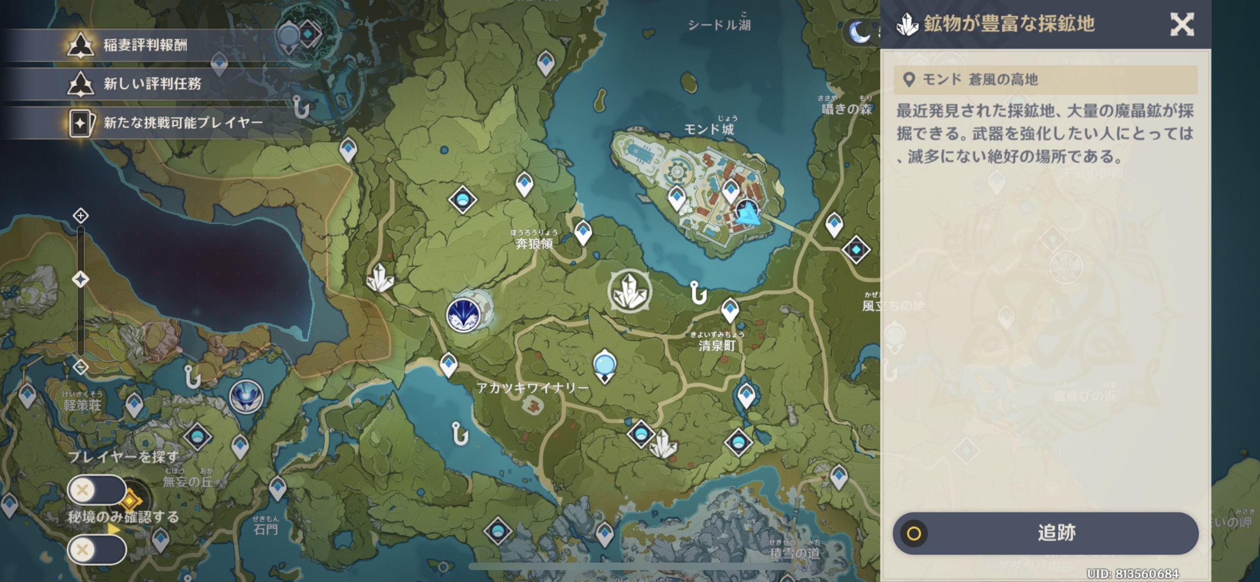 するとマップに鉱石のマークが出ます。