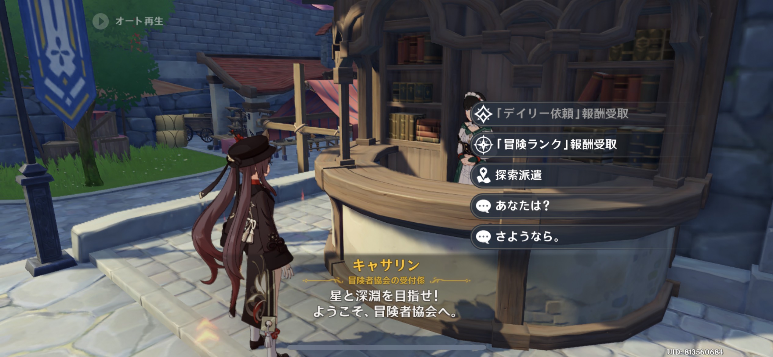冒険者協会のキャサリンに話しかけてキャラクターを派遣することができ、時間経過で鉱石を入手できます。