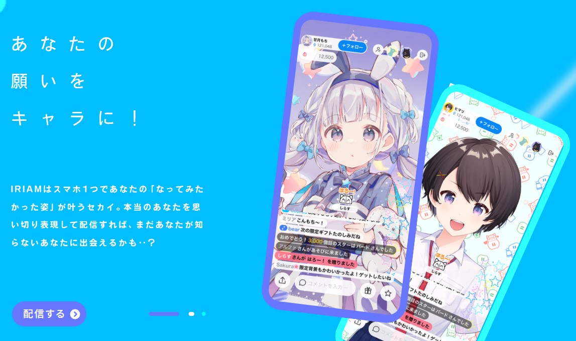 IRIAMは一言で説明すると自分のイラストを動かしてキャラクターになって配信できるライブ配信アプリです!
