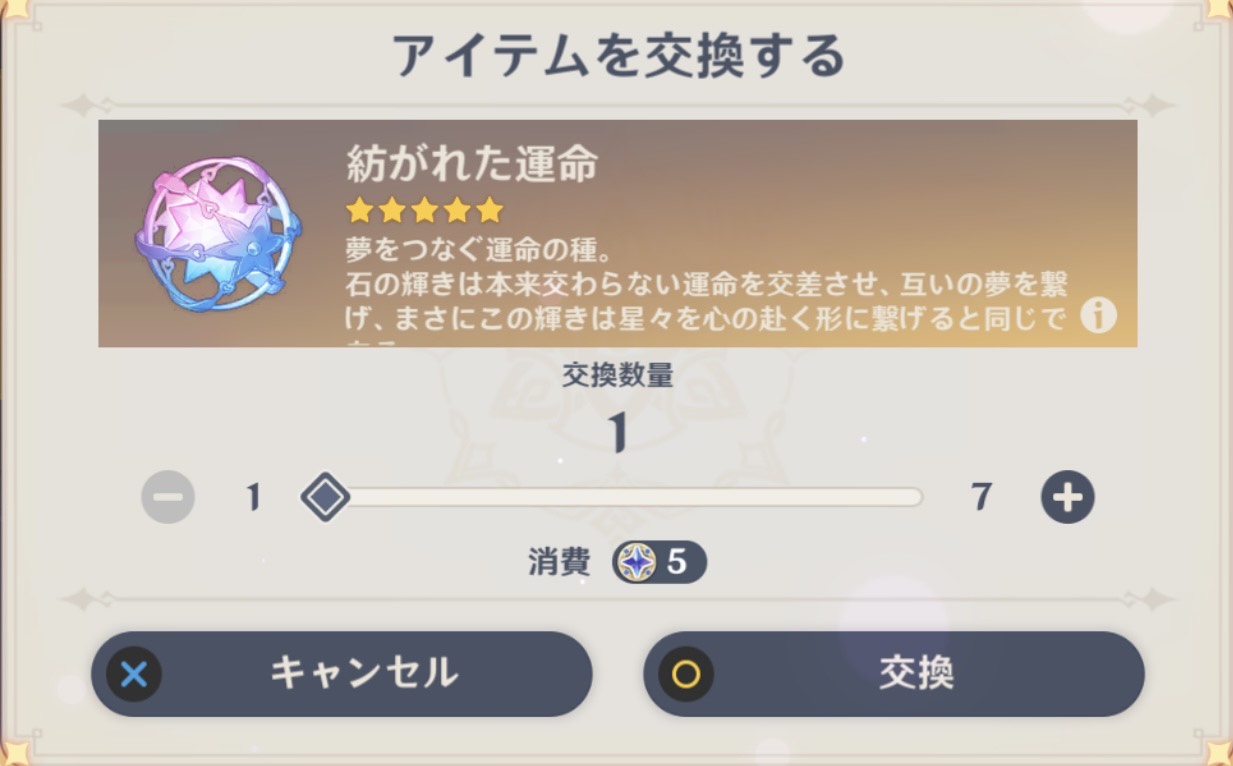 紡がれた運命を交換しようすると必要なスターライトは5個。