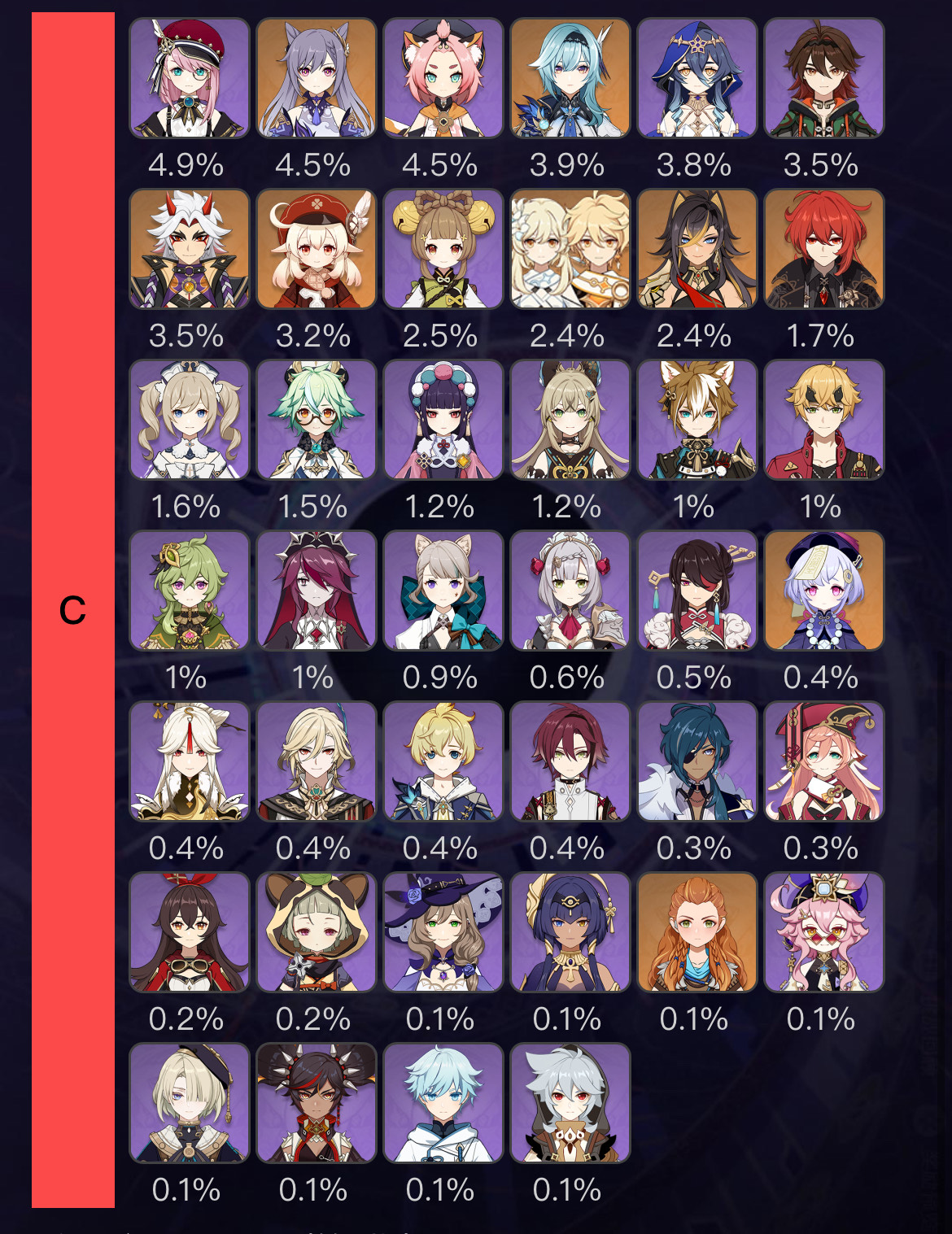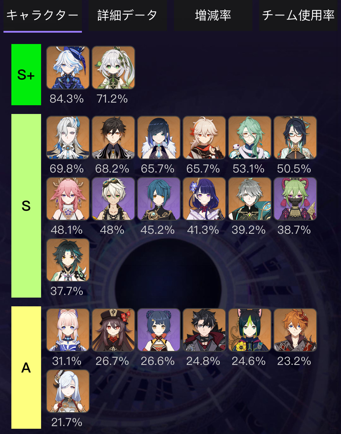 以上、ver4.4後半の深境螺旋の使用率ランキングを見ていきました。